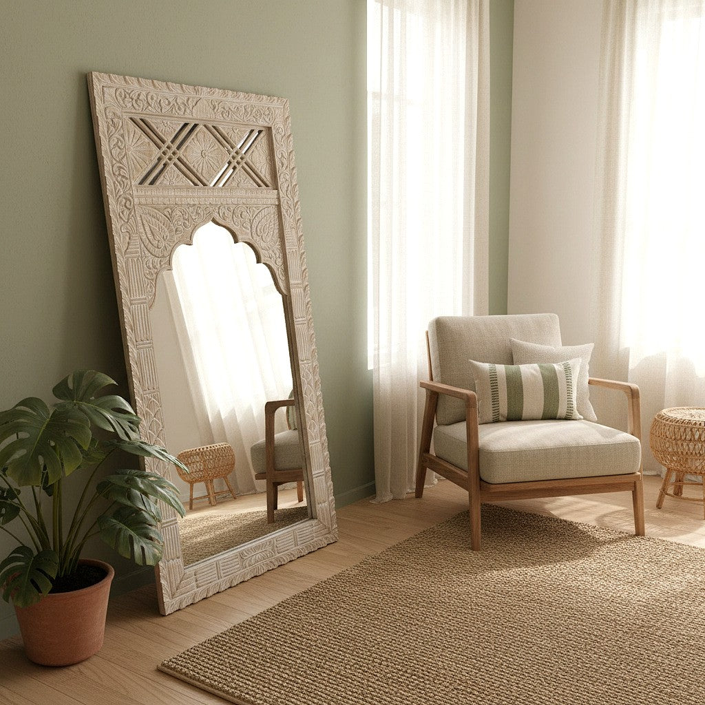 Hand Carved Mirror "Uluwatu" - Antic-wash - 180 cm