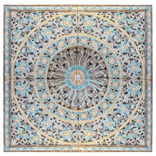 Balinese Carved Mandala Full Bed Headboard Dianna Blue - USA