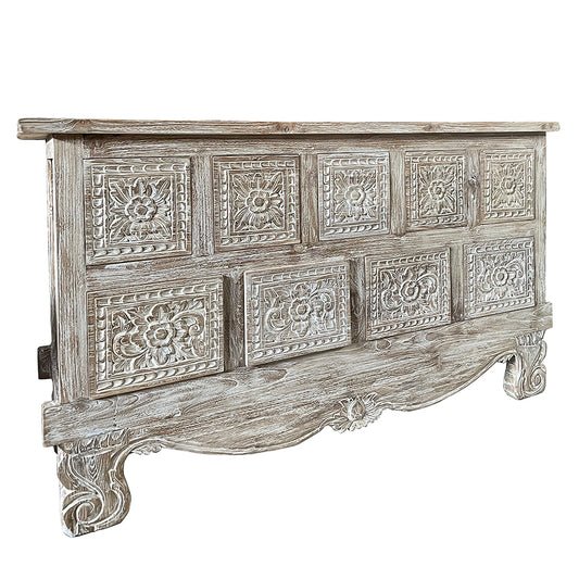Carved Bed Headboard "Ayunina" - Antic Wash - USA