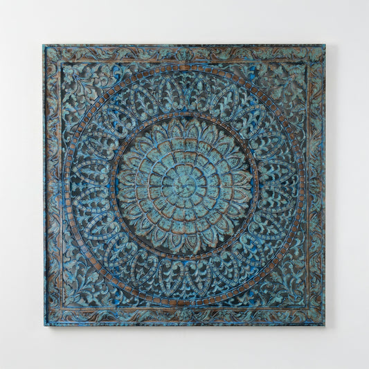 Balinese Carved Mandala Full Bed Headboard Dianna Blue - USA