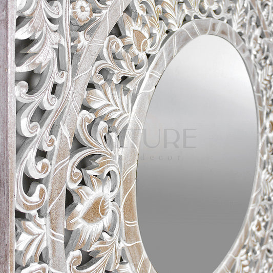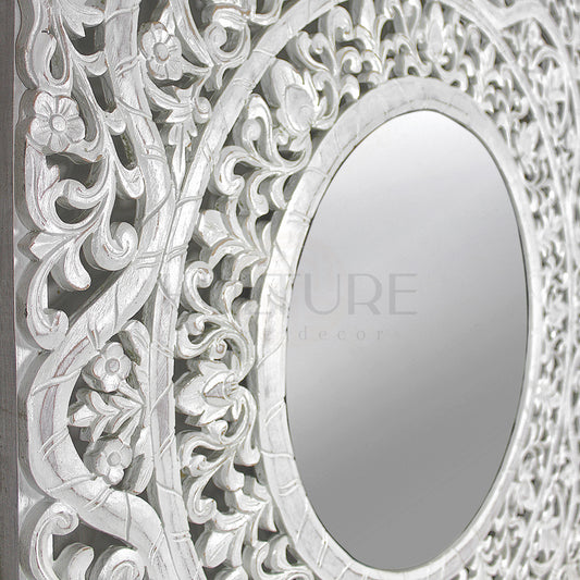 Carved Mirror "Dewata" - White Wash - 100 cm