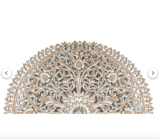 Hand Carved Half-moon Mandala Bed headboard - 'Sri' in Multi Color Brown