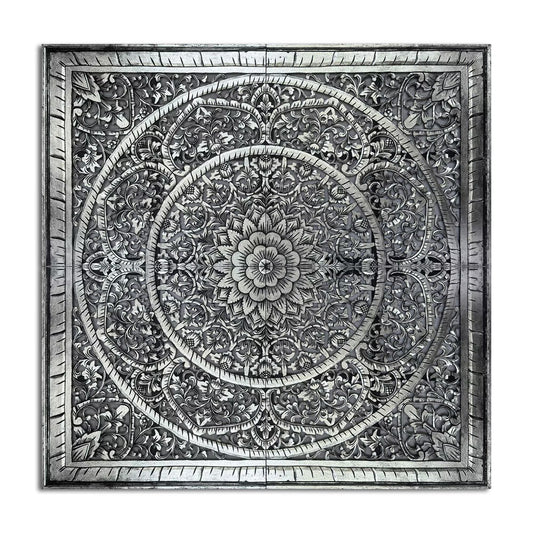 Giant Wood Wall Art / Full Bed Headboard "Manusa" - Silver - USA