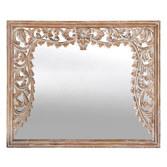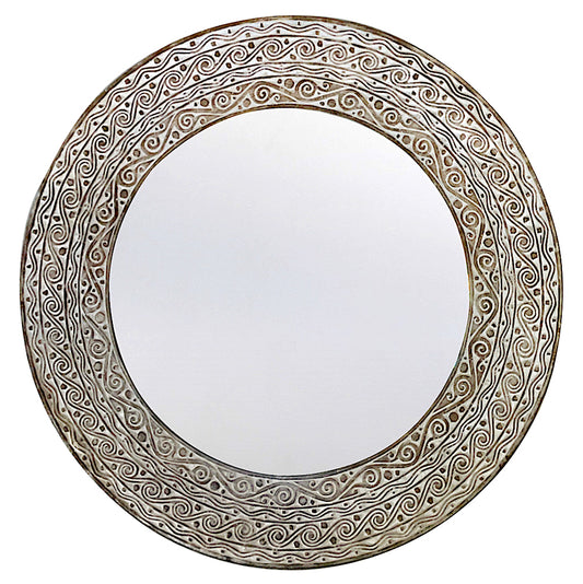 Hand Carved Mirror "Aruni" - White Wash - 80 cm
