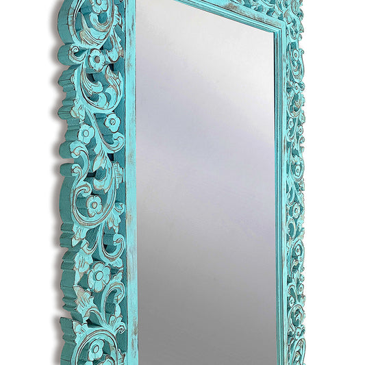 Hand Carved Mirror "Agung" - Turquoise Wash - 150 cm