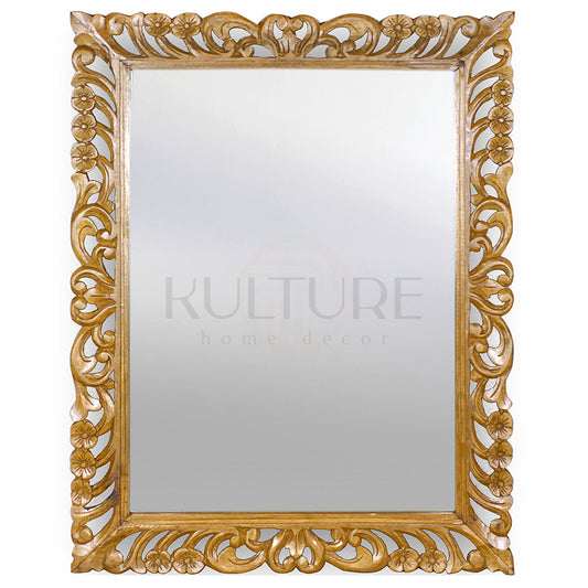 Hand Carved Mirror "Cempaka" Gold Wash - 180 cm