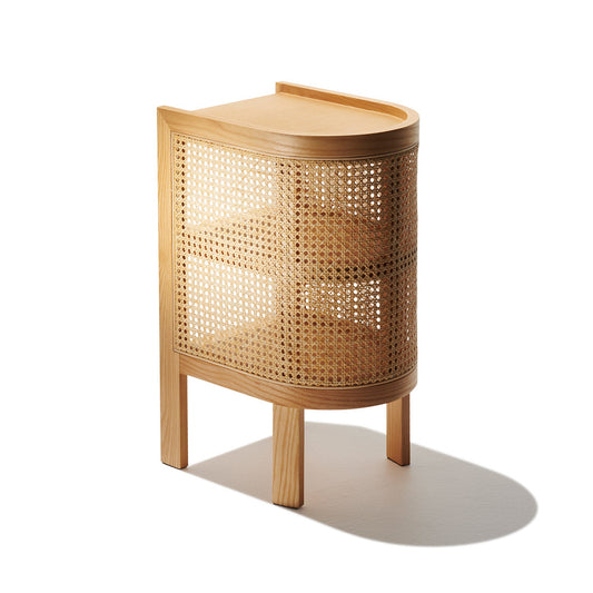 Kamboja Cane Night Stand in Natural & Walnut