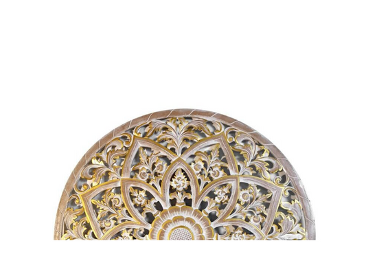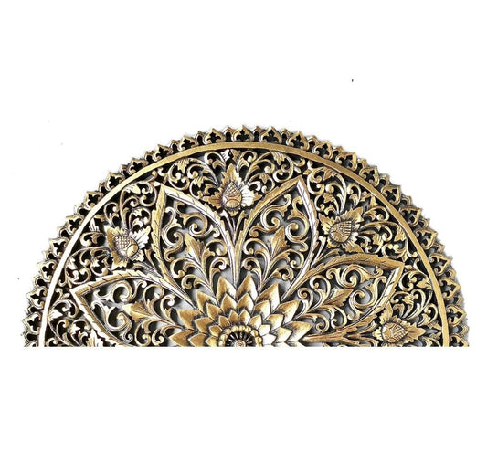 Hand carved Queen Size Half-moon Mandala Bed headboard 'Serupa' in Gold Antic - 60 inches