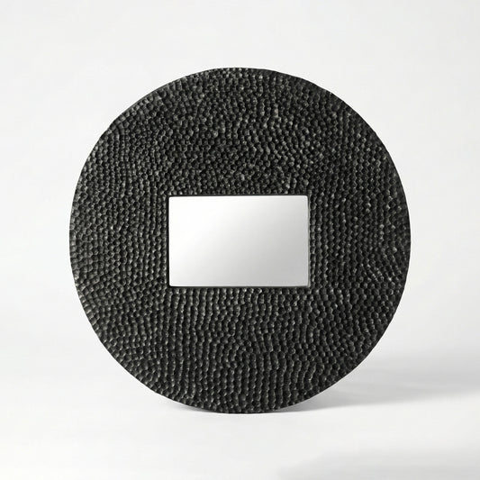 Wooden Round Sculptured Mirror "Pariaman" - Black - 70 cm