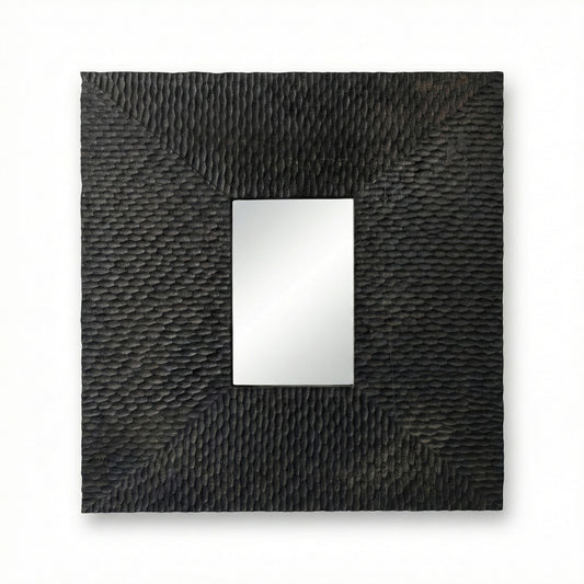 Wooden Sculptured Mirror "Rengkuh" - Black - 70 cm