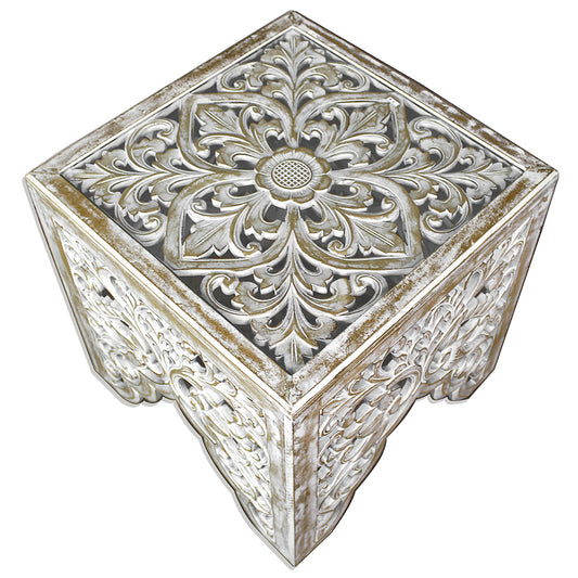 Carved Bedside Table "Ratu" - White
