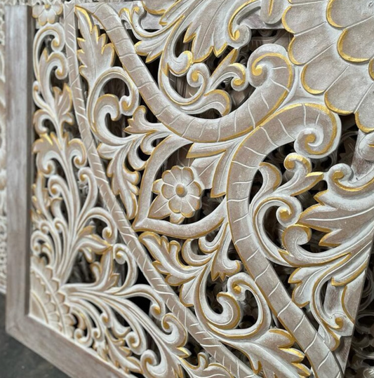 Carved Half Cut Bed Headboard "Sumber" - [US-stock]
