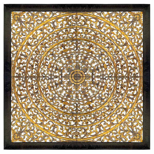 Carved Full Bed Headboard "Rampai" - Gold - USA