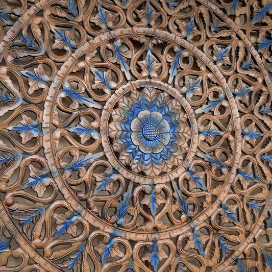 Carved Decorative Panel "Tropis" in Blue & Brown Wash - 100 x 100 cm