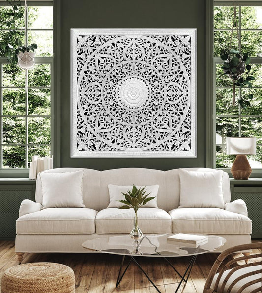 Carved Decorative Panel "Umadewi" in White - 120 cm