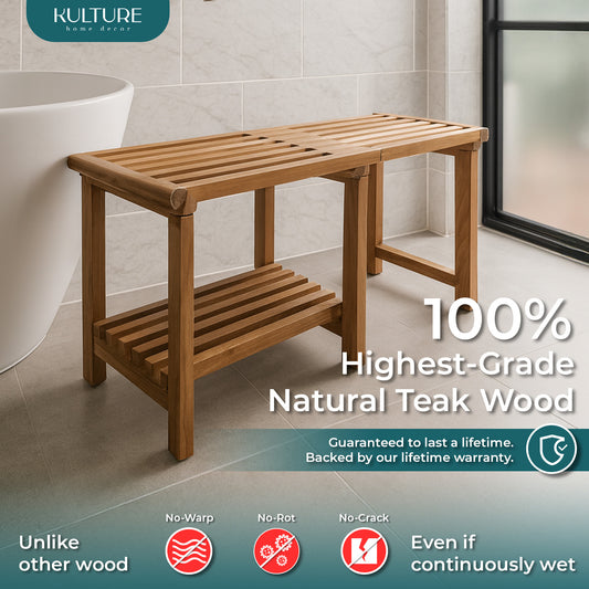 New Teak Shower Bench [Expandable from 17" to 30"] - US