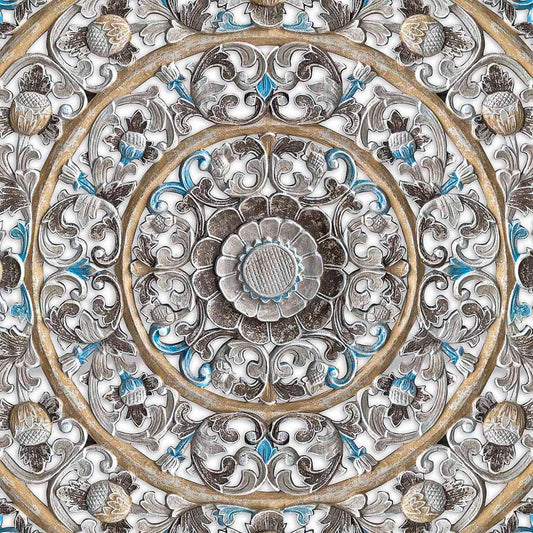 Carved Decorative Panel "Jantung" - Blue Wash - 100 cm