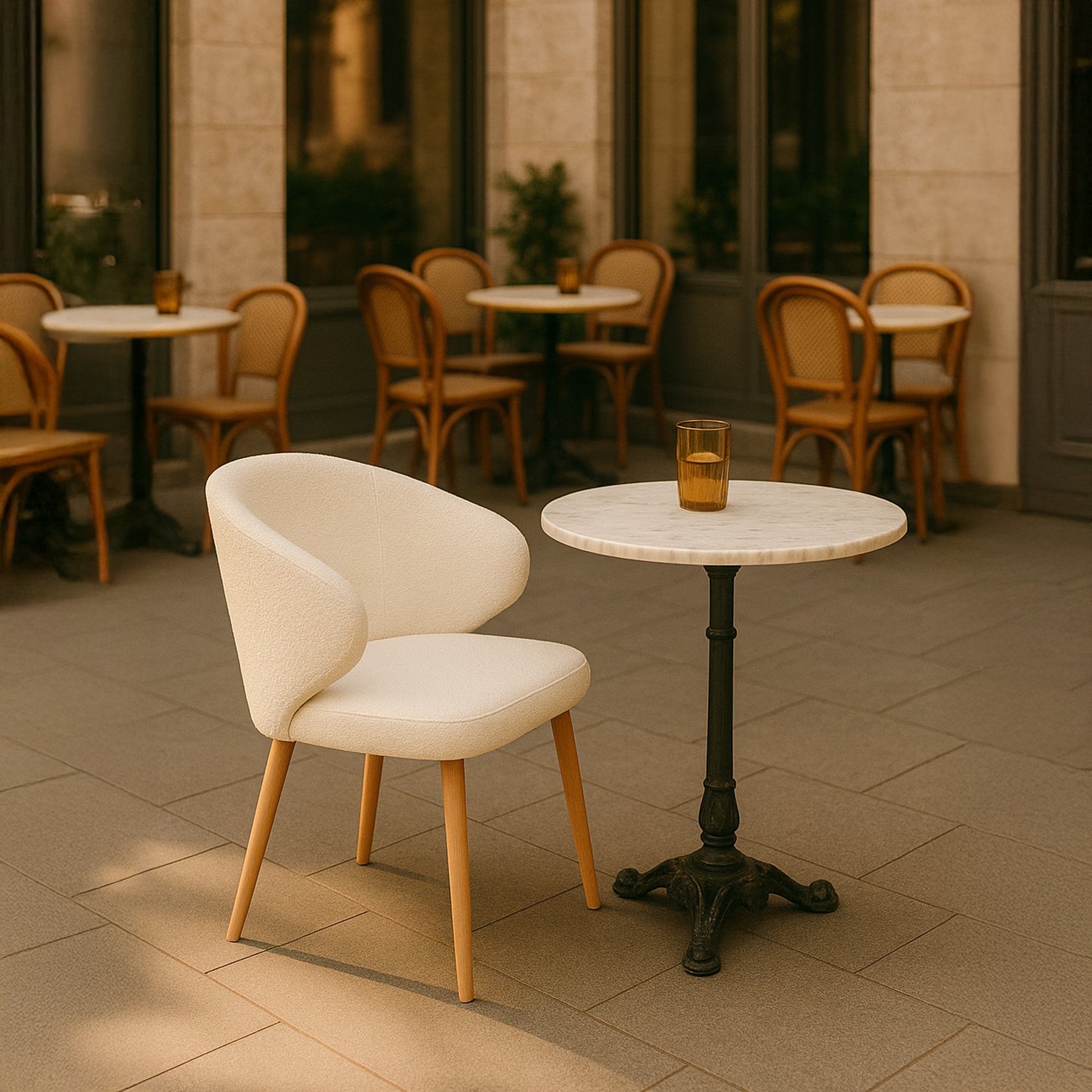 • Available in leather and boucle options