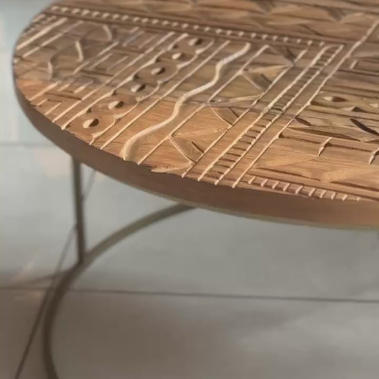 Carved Wooden Nesting Table "Huni" - 80 and 60 cm